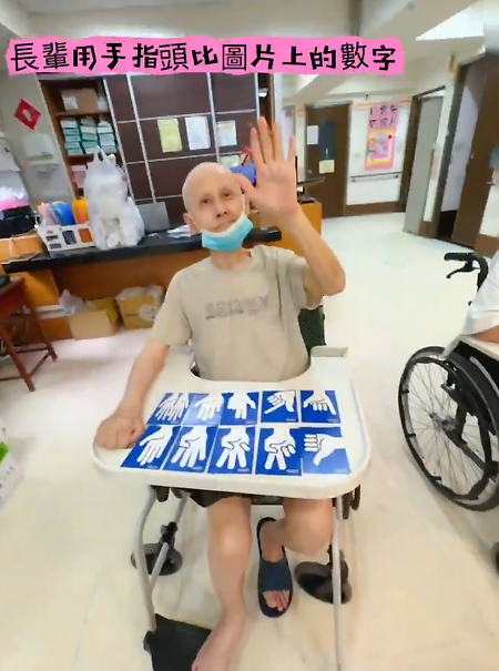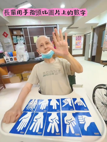 長輩用手指頭比圖片上的數字
